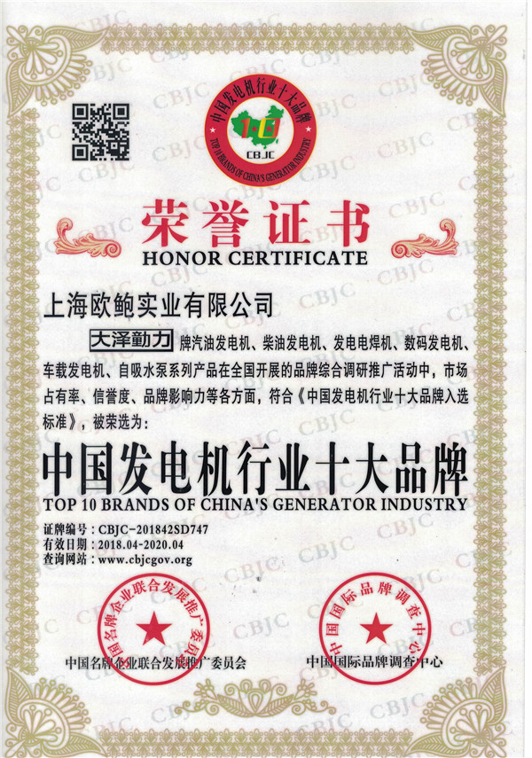 证书介绍 大泽动力是一家销售大泽品牌的发电机,大泽现在主营: