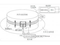 环冷小车当前走行位置 : 采用刻度标尺位置检测,刻度标尺架设见《现场施工方案》,每隔2米使用工程塑料夹具依次固定,确保沿走行方向的平直度和牢固度。游尺指针通过在环冷小车上设置一安装支架辅助安装,保证环冷小车在往返移动时游尺指针轨迹与刻度标尺中心线平行。车载柜也(刻度生成仪)安装在环冷小车上,将产生的地址信号直接传给游尺指针,用于向刻度标尺发射出地址信号。中控柜(刻
