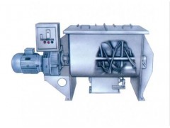 该机由混合槽、螺旋搅拌叶片和传动部件等组合而成,螺旋叶片一般做成二层,外层螺旋将物料从两侧向中央汇集,内层螺旋将物料从中央向两侧分流,使物料在混合槽内形成对流混合,从而达到高均匀度混合。
