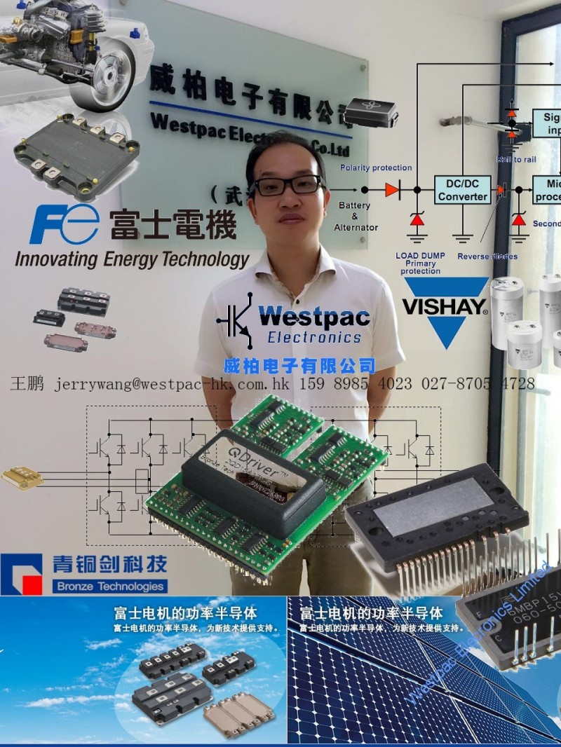 深圳威柏德电子青岛分公司是WESTPAC ELECTRONICS香港威柏电子在青岛的代表处,主要服务山东及华北地区的汽车电子,工业及新能源客户,为客户提供*元器件-FUJI富士IGBT模块代理 VISHAY代理 IGBT驱动器代理 ESTA电容代理 汽车电源IC 汽车高低边驱动IC 汽车主被动安全IC 汽车MEMS传感器 汽车CAN收发器 汽车电磁阀驱动IC 汽车智能功率开关IPD 汽车电机驱动IC EV/HEV电动汽车电流检测电阻 EV/HEV电动汽车DC/DC转换用平面型变压器 EV/HEV汽车级薄膜电容 EV/HEV电驱充电泄流功率电阻 汽车MAP/T-MAP压力传感器 汽车TVS 汽车电阻电容 汽车MOSFET 汽车点火IGBT 汽车压力传感器 汽车IGBT模块 汽车IPM模块等产品,致力于山东及华北地区汽车电子,工业及新能源发展!