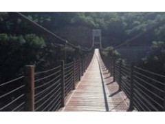 河南斑马游乐设备有限公司生产的吊桥系列,桥身由两根粗若手臂的主钢丝绳及多根底钢丝绳构成,一根主钢丝绳的重量就达到了4吨,每根绳子拉力都经过精密的仪器测试过,确保每根铁索均衡受力,保障游客安全。为增加游客惊险体验度,特种玻璃钢的桥面,每块玻璃板厚约24毫米均双层构造,具有强度高、抗弯曲、耐冲击等特点,强度达到了普通玻璃的25倍以上。