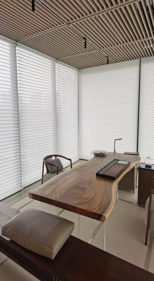 此外,香格里拉帘的隔音效果也不容小觑,它可以有效阻隔外界的噪音,让室内更加安静!在操作方面,香格里拉帘非常便捷!它可以通过手动拉绳或电动控制的方式进行开合和调节!对于一些大型的窗户或不方便手动操作的地方,电动控制的香格里拉帘无疑是佳选择。只需轻轻按下遥控器上的按钮,窗帘就会自动开合,方便又省力!在搭配上,香格里拉帘也具有很强的适应性!它的颜色和款式丰富多样,可以根据不同的装修风格和个人喜好进行选择!