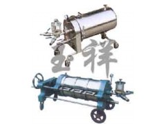 过滤器的过滤系统由机腔、壳体、空心轴、过滤元件、隔环、橡胶密封圈、卡箍、缓冲板、玻璃视镜窗、压力表等组成。机腔分整体、多节二种,连接处采用无毒橡胶密封圈,所有与液体接触部分全部采用1Cr18NiTi优质不锈钢制造。工作时用手轮或用卡箍作用力联接壳体形成密封台。窗台与视镜窗上装有排气阀,开车后其气体可从排气阀排出。