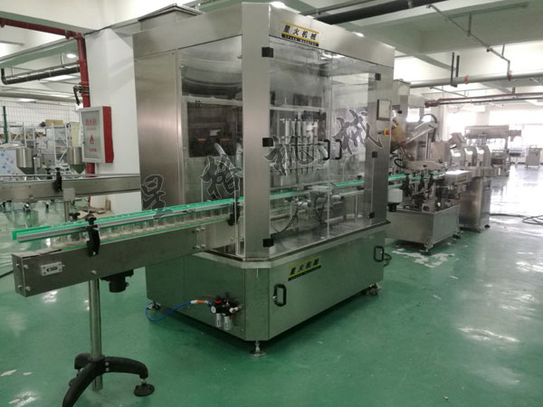 酱料灌装真空旋盖生产线我公司根据循化县金椒食品开发有限公司的要求新研发的一款六头酱料灌装旋盖生产线,该生产线由理瓶机、六头酱料灌装机、全自动真空旋盖机、收瓶机组成,是一款生产效率非常高的生产设备。