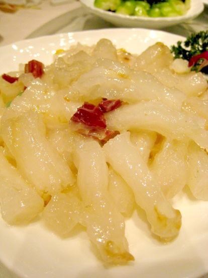蹄筋中含有丰富的胶原蛋白质和生物钙,脂肪含量也比肥肉低,并且不含胆固醇,能增强细胞生理代谢。[1]