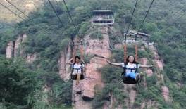 河南斑马游乐设备有限公司滑索是一种新兴的娱 乐项目,是极限运动中的一种。穿戴安全吊具的乘客,悬挂在滑动小车下,以斜拉的两根钢丝绳为轨道,利用重力,从高处向低处飞速滑下,这就是滑索。滑索运动充满速度感和刺激性,可以轻松跨越山谷、河流、湖面等障碍,让乘客体会到凌空飞渡的新奇感受,因此深得游客,尤其是年轻人的喜爱。