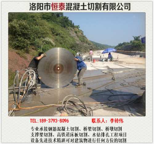 洛阳市恒泰混凝土切割有限公司是一家*承接建筑物切割、桥梁切割、地铁支撑梁切割、水下切割、隧道切割、高速公路防护栏切割拆除等工程的钢筋混凝土切割施工队伍,以来一直秉持安全*的宗旨,以河南为中心,辐射至浙江、江苏、安徽、山东、重庆、成都、贵阳、兰州、武汉、江西、东北三省等地,在*混凝土切割拆除施工领域建立了*的口碑。