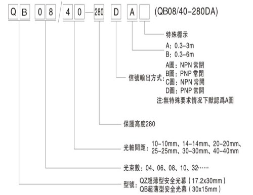 **安全光幕感应器开关/*安全光栅感应器开关/东莞市大迪电子科技有限公司QB/QZ系列光幕标准(默认)输出方式:12-24V NPN常闭输出
