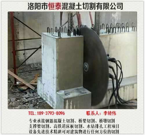 洛阳市恒泰混凝土切割有限公司,是一家*承接建筑物切割、桥梁切割、地铁支撑梁切割、水下切割、隧道切割、高速公路防护栏切割拆除等工程的钢筋混凝土切割施工队伍,以来一直秉持安全*的宗旨,以河南为中心,辐射至浙江、江苏、安徽、山东、重庆、成都、贵阳、兰州、武汉、江西、东北三省等地,在*混凝土切割拆除施工领域建立了*的口碑。