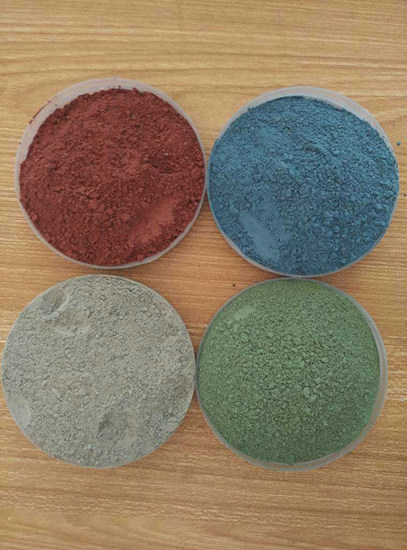 我厂出售的金刚砂材料颜色:水泥原色、灰色、各种绿色(墨绿色、草绿色、翠绿色)、浅红色、深红色、黄色、蓝色、黑色等。