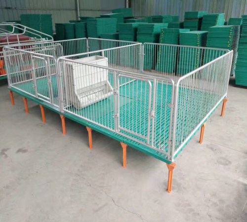 仔猪围栏是为仔猪提供一个活动的空间,并防止跑出去。围栏有栅条式和隔板式两种。栅条式有利于通风和观察,但不利于防疫。隔板式有利于防疫但造价较高,仔猪围栏的长为2.0-2.3米,宽为1.7-1.8米,高为0.5-0.6米,栅格间距不大于40毫米,仔猪补料槽和饮水器都装在围栏的后部,供粪便徘在后部的排粪区,猪产床地板由塑料地板和铸铁地板组成。