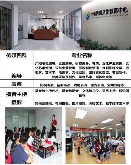 中传传媒文化教育中心是一家专注于传媒*考前教育的权威机构。依托高校的教学资源,与国内所有*大学对接。具备强大的师资团队,优美的教育环境,*的教学成果,是传媒艺考的*教育*。注重因材施教,七年来在全国艺考中均取得优异成绩,学生遍布全国多所*大学,2017年再创佳绩,捷报频传,声名鹊起。