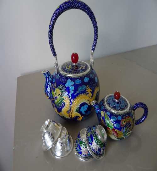 掐丝景泰蓝生产厂家/*珐琅彩酒具/鹤庆县寸字号银器坊寸字号纯手工一体打景泰蓝银壶,是纯手工景泰蓝银壶,纯手工私人定制景泰蓝银壶,景泰蓝色彩地道正宗,做工精美,栩栩如生,体现了新华村手工景泰蓝加工技术达到了一个极高的艺术高度。景泰蓝的色彩图案等每个细节都是由客户提出的个性化私人定制景泰蓝模式。这种纯手工景泰蓝的工艺高度,是机器景泰蓝和普通景泰蓝无法比拟和无法做到的。