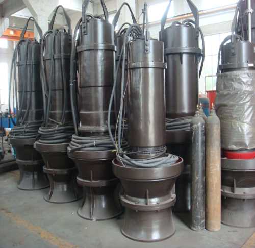1、潜水轴流泵:驱动水泵的电动机是干式全封闭潜水三相异步电动机,可以长期浸入水中运行,具有传统机组一系列无可比拟的优点。