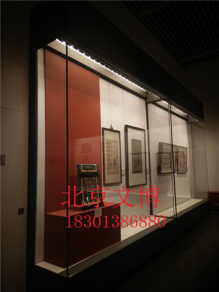 柜体,夹胶钢化玻璃,灯具等材料,开启方式是遥控自动式,前后推拉式等延墙通柜:采用方钢龙骨架,碳钢板柜体,*铝型材,轨道,铰链系统,夹胶钢化玻璃,灯具,锁具等材料,通柜的开启方式*种是:遥控锁具,开启方式全自动化左右隐藏式,安全保护电控系统,优点是:开启放松,摆放文物方便,安装快捷,制作工期短。第二种是:先前后推拉,再左右平移的方法。第三种就是普通沿墙柜在展柜侧面开一个单扇门的开启方式。
