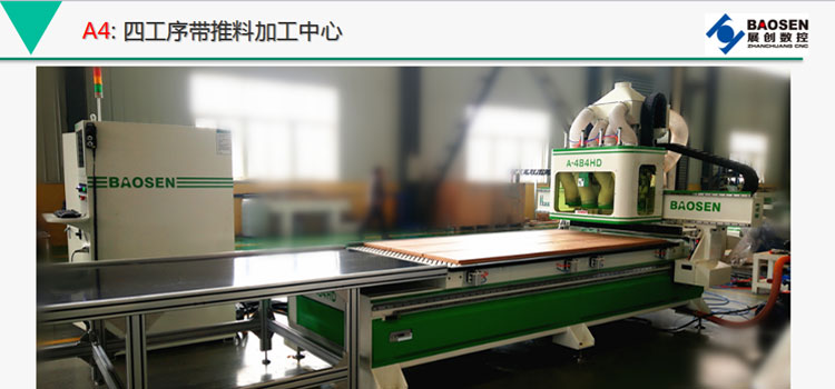 1.功能:四主轴+推料系统,适用于板式家具*开料、打孔、开槽、铣型加工;