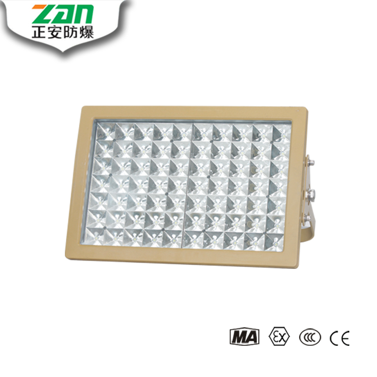 防爆灯外壳采用铝合金壳体,表面经抛丸后高压静电喷塑,有效提高了壳体的散热性能;电路基板紧贴铝合金壳体,可将点热源瞬时转换为面热源,散热面积成倍增加,利于热量迅速分散,提高散热效率;壳体表面具有气流分散沟槽,借助空气流动带走热量;散热鳍片密度高,大大提高散热面积,充分保证LED的散热要求,使用寿命更长。
