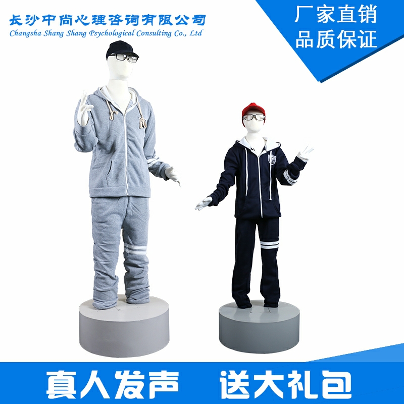 中小学版仿真发声宣泄人 1个 仿真人设计,人高度为:140CM,带底座整体高度:160CM,形象逼真,使用高密度发泡海绵为填充物。击打手感好,光滑强度高。有定制着装卫衣。宣泄人手臂采用活动设计,可自由调整手臂姿势,五指分开设计,可握拳,可出掌,趣味性强。击打的时候可以随机发出十一中不同的幽默语句,用户能够自由定制宣泄人的击打语句。宣泄人底座采用金属材质,罐沙固定。外层喷塑处理,圆形设计,大气美观。长:55CM,高:20CM。