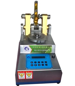 使用原理:被测试试样在水平台上旋转,两个磨轮被赋予特定的压力压在试片上旋转,磨轮的轴与水平面相平行,一个磨轮朝外,一个磨轮朝内,在一定的时间内,记录测试试样的所有变化。本机适用于皮革、布、纸、涂料、合板、皮革、地砖、玻璃、天然塑料等。试法为回转之试料顶着一对砂轮,并加以规定之负荷,试料旋转时带动砂轮,藉以磨耗试料。磨耗损失重量为试验前后之重量差。