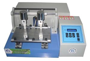 用途说明:电动磨擦脱色试验机可以做干擦与湿擦两种测试,测试原理是将已染色之织物、皮革夹持在机台上,在9N的负荷下以60次每分钟的速率来回磨擦104mm的行程的试样,以干式或湿式之白棉布磨擦后,判定白棉布上着色之状态,在标准光源对色箱里以GB251沾色用灰色样卡目测来评定试样的染色牢度等级。