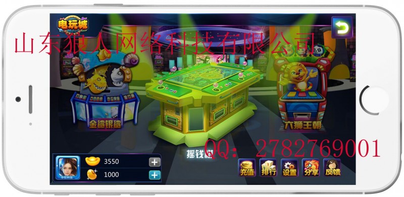 山东狼人网络科技有限公司,携众研发团队精心打造新一代移动游戏厅(又称移动电玩城新版),郑重推出单挑,幸运六狮,牛魔王,QQ美人鱼,缺一门,火拼斗牛,李逵劈鱼,蛟龙出海,四海龙王,西游降魔,欢乐30秒,水浒传,西游记,小马快跑,3D宝马,快乐*等20余款游戏,欢迎广大有志之士订购。