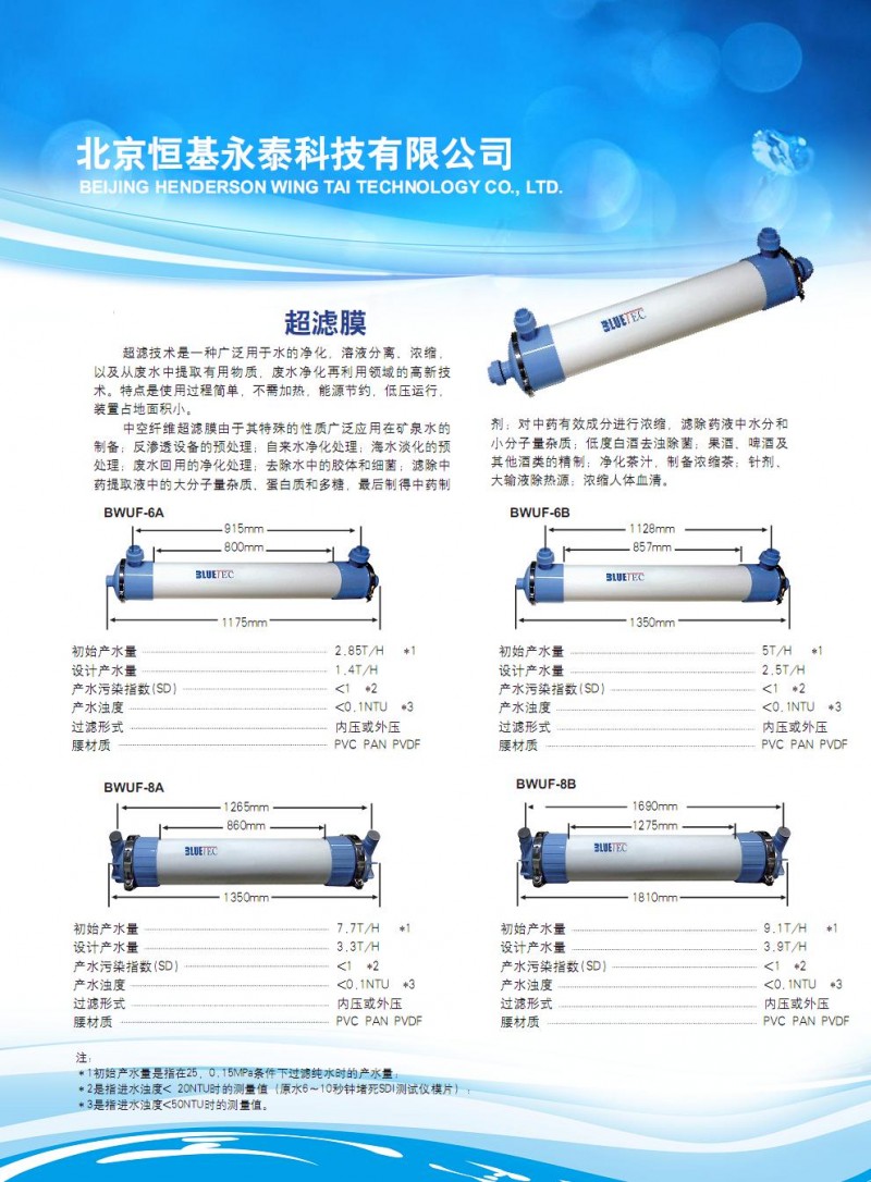 膜分离技术是一项被西方科技界称为21世纪具发展潜力的高新技术,广泛用于物质的分离、浓缩和提纯。超滤装置是以毛细管式超滤膜为核心设计制造的,其超滤膜微孔可达0.01微米(十万分之一毫米)以下,因而过滤精度高。