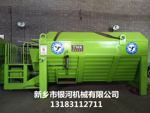 银河卧式9立方TMR饲料搅拌机采用卧式3搅龙设计的饲料搅拌仓,主搅龙转叶上配置有特殊圆刀及长圆刀或梅花刀。搅龙的安装位置为水平方向;三搅龙机械螺旋切割搅拌,形成了立体的轮回多循环搅拌系统,该机还配备了精准的称重系统,传动部分采用了超大扭矩的星轮减速机使得该机使用寿命长,作业噪音低。银河卧式TMR饲料搅拌机的优点在于箱体较低,便于装填原料。饲料搅拌效果较立式柔软些,混合性能更好,混合速度更快。卧式TMR饲料搅拌机的工作时,可将物料从尾部或上部投入箱内,靠重力落入箱底,启动主搅龙转动(右旋),搅龙的*段将物料向前推送进入第2段,速度有所减缓,增加了横向搅拌混合作用,在动、定刀片共同作用下,切割粉碎物料。物料继续前进进入第3段(物料已靠近箱壁),物料向前、向上堆集进入副搅龙工作区,副搅龙为左旋,将物料由前向后输送,在重力作用下,物料再次进入主搅龙工作区,进行再次推进、粉碎、混合。由于搅龙安装刀片数量较多在饲草料配方中需要处理根茎类饲料时,卧式机型上的数十个刀片也能够快速有效的处理。经TMR搅拌机搅拌后,提高了饲料的适口性,促进了牛、羊摄入营养的均衡。降低了劳动强度。可以节约饲喂时间,节省饲养工人的数量。