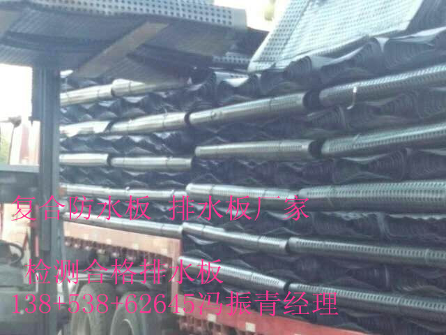 圆锥突台的顶面胶接一层过滤土工布,以阻止泥土微粒通过,从而避免排水通道阻塞使孔道排水顺畅。138=538=62645冯经理供应 的排水使用砖石瓦块作为导滤层、使用较多的鹅卵石或碎石作为滤水层、将水排到。而用排水板取代鹅卵石滤水层来排水则省时、省力又节能、节省投资、还能建筑物的荷载。良好的排水对土建的施工周期及构筑物的正常使用和寿命具有重要的作用。排水板与多孔渗水管组成一个有效的疏排水,圆柱形的多空排水板与土工布也组成一个排水,从而形成一个具有渗水、贮水和排水功能的。