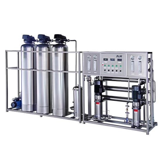 反渗透是*精密的膜法液体分离技术,在进水(浓溶液)侧施加操作压力以克服自然渗透压,当高于自然渗透压的操作压力加于浓溶液侧时水分子自然渗透的流动方向就会逆转,进水(浓溶液)中的水分子部份通过反渗透膜成为稀溶液侧的净化产水;反渗透设备能阻挡所有溶解性盐及分子量大于100的有机物,但允许水分子透过,反渗透复合膜脱盐率一般大于98%,它们广泛用于工业纯水及电子超纯水制备,饮用纯净水生产,锅炉给水等过程。