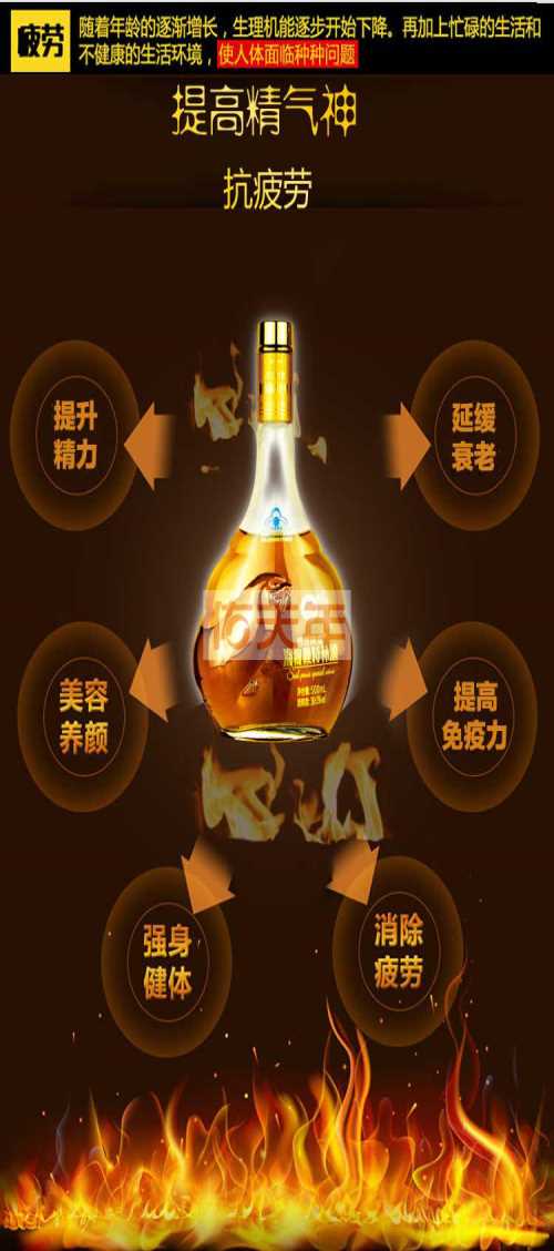“四世同堂”海狗鞭特补酒选用名贵药材海狗鞭,配以羊藿、人参、砂仁、肉桂、枸杞子、红花、山药、茯苓、大枣等多种动植物原料及*粮食酒,采用现*物工程技术研制开发的保健食品。