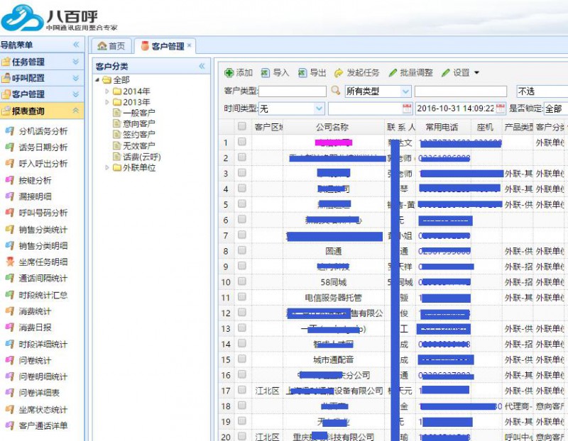 “八百呼*Call Center”系统引领行业趋势和建设理念,使用*的IP软交换通讯应用传输技术,在保障通信效果的情况下通过“纯软”交换实现呼叫中心建设成本和维护成本的大幅度降低;同时通过呼叫中心通讯层技术整合用户的企业微信、企业QQ、官网、APP、OA、ERP、CRM等系统形成互联互通的数据中枢、客服中枢、调度中枢、监控中枢,在DT时代为企业挖掘大数据应用提供有效的工具,方便企业管理。