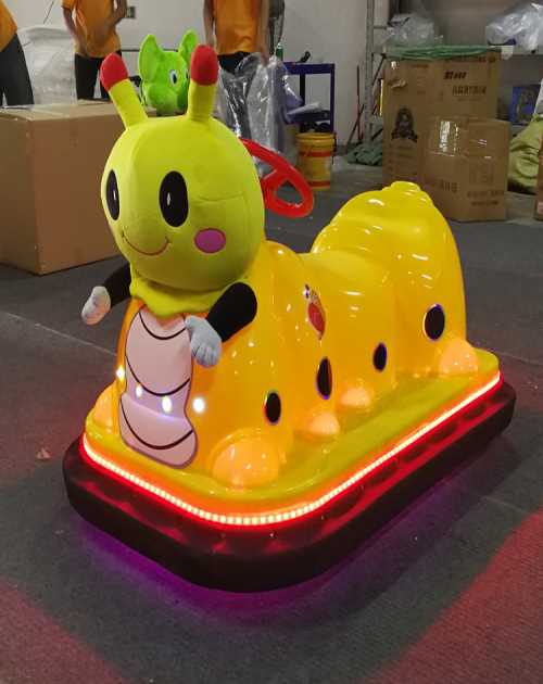 广场游乐碰碰车毛毛虫/儿童碰碰车厂家/碰碰车厂家“大憨熊”毛毛虫碰碰车做工精细,款式新颖,具有超高的吸引力,一投放市场,就受到小孩子喜爱,也非常适合乘坐大人,小孩,儿童游乐碰碰车在玩乐中让你感受刺激的感觉,可前进,左转,右转,还可以360度极限调头,碰碰车内置智能控制器,有时间定时功能,可1-40分钟内随意定时,有计数功能,走一次,计数一次,让你更轻松管理,内置mp3动感音乐,让你在游玩中更加嗨。带彩灯:周围全是七彩LED彩灯,一组彩灯待机状态可闪光,同真实车一样的基本功能,手动/遥控启动。车子操作简单,骑乘方便,大人小孩都喜欢,5岁以上孩子都可以独立操作。有快慢两档可调,安全方便。