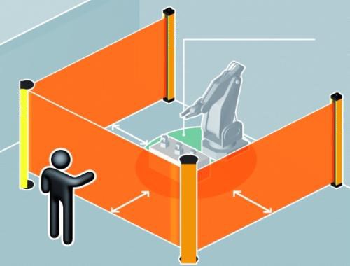 QSA系列光电保护装置是利用反射镜,改变光线的传输方向,形成2面或3面的保护区域。