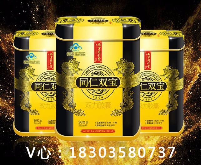 同仁双宝是同仁堂*,金招牌、*、*沉淀。同仁双宝双力*是采用药食两用的青藏高原牦牛牛鞭和非洲珍贵黑树眼镜蛇成年雄蛇蛇鞭两种原料,经过古方古法炮制并结合现代医药生产技术通过低温萃取分离充分保证活性物质与有效成份,让有效营养物质的吸收率更高,使传统古方药膳的效果得以全面发挥。
