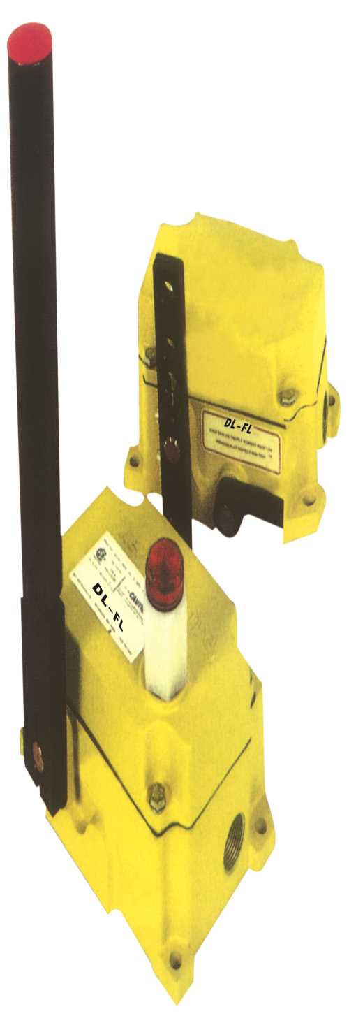 拉线开关用于皮带机的紧急停机,钢丝绳一端固定在一个固定的吊环上,另一端固定在开关臂杆上。开关到固定端的距离通常不超过30米,两开关之间的距离通常不超过60米,向上向下或拉动的力促使臂杆转动到了报警位置,触动微动开关并锁定直到人工手动复位。