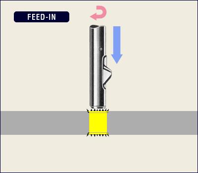 刀片过孔是依靠弹性收缩改变了刀片的外径尺寸,刀片的圆周外角经过倒角处理,过孔时不会对原孔壁产生切削与损伤,过孔后自然张开实现倒角切削。当刀体深入孔壁下端时,不论张开还是闭合,都会相应的产生倒角切削,特别是当退刀时,刀片闭合,内端33度角改变到近似45度角,可以达到倒角近似45度。