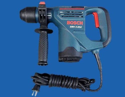 电锤是附有气动锤击机构的一种带安全离合器的电动式旋转锤钻。电锤是利用活塞运动的原理,压缩气体冲击钻头,不需要手使多大的力气,可以在混凝土、砖、石头等硬性材料上开6--100mm的孔,电锤在上述材料上开孔效率较高,但它不能在金属上开孔。