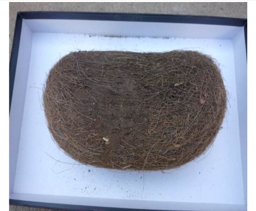 刘洪友捡到的“猪宝”是个圆球体,呈椭圆形,长处有11厘米,宽度有9厘米,球体上有黑毛,球体为淡黄色,很粗糙,外形酷似一个大板栗球。凑近闻有股淡淡的香味,用手按一按感觉硬硬