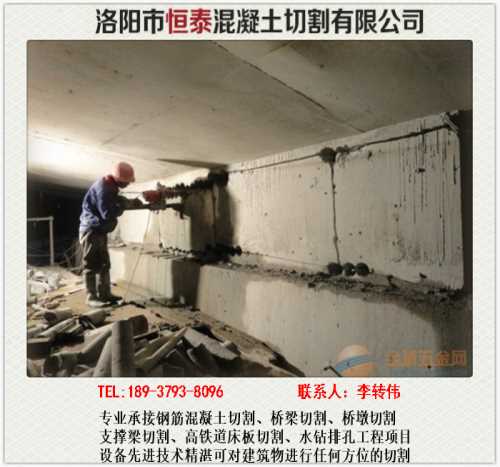 洛阳市恒泰混凝土切割有限公司,是一家*承接建筑物切割、桥梁切割、地铁支撑梁切割、水下切割、隧道切割、高速公路防护栏切割拆除等工程的钢筋混凝土切割施工队伍,以来一直秉持安全*的宗旨,以河南为中心,辐射至浙江、江苏、安徽、山东、重庆、成都、贵阳、兰州、武汉、江西、东北三省等地,在*混凝土切割拆除施工领域建立了*的口碑。