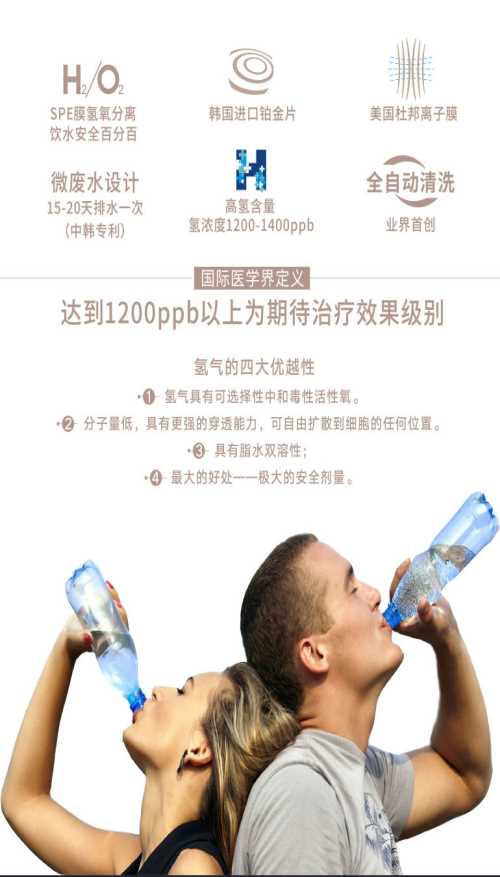 2、氢气本身是一种天然抗*,加入水中可中和身体血液和细胞里的自由基。