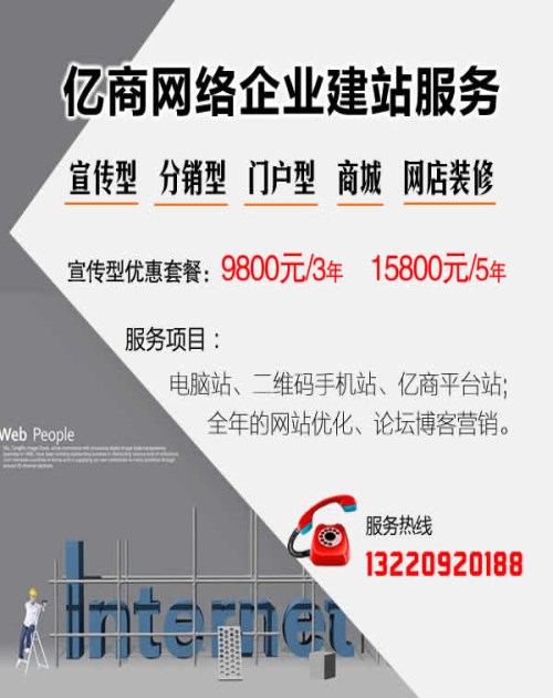 亿商网络为您提供:企业标准宣传型,企业分销型,在线商城型,行业门户型网站设计制作、CMS应用型网站开发、域名注册、空间邮箱租用。