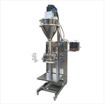 工作流程:人工套袋或人工放罐---容器升高----快速充填,同时容器下降----重量达到预量值---快速充填---重量达到目标值----人工取出容器