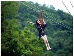 滑索:也称“速滑”、“速降”、“空中飞人”等.*早用于高山自救和军事突击行动.后演化为游乐项目,是一项具有挑战性、刺激性和娱乐性的现代化体育游乐项目。可跨越草地、湖泊、河流、峡谷,借助高差从高处以较高的速度向下滑行。使游客在有惊无险的快乐中感受刺激和满足。