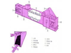 此外,还有供推移输送机用的液压千斤顶装置和紧链时用的紧链器等附属部件。机头部由机头架、电动机、液力偶合器、减速器及链轮等件组成。中部由过渡槽、中部槽、链条和刮板等件组成。机尾部是供刮板链返回的装置。重型刮板输送机的机尾与机头一样,也设有动力传动装置,从安设的位置来区分叫上机头与下机头。