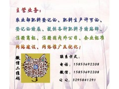 一、代办肥料登记证 二、肥料手续贴牌:充分解决当地人不认当地货问题,提供三证齐全的肥料贴牌手续供委托生产销售(各种肥料手续授权使用)三、注册商标:免费查询、免费设计 四、注册国内外销售公司(青岛、烟台、香港、英国、美国) 五、办理企业标准:企业生产的产品,没有*、行业标准和地方标准的,制定的企业产品标准 六、网站建设:企业网站、网络推广、信息发布、微商运营!