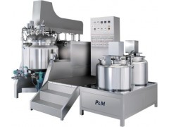 的强力剪断、冲击、乱流等过程,物料在剪切缝中被切割,迅速破碎成2um~100的微粒,由于乳化锅内处于真空状态,物料在搅拌过程中产生的气泡被及时抽走。固定式真空乳化机是在对国外进口设备进行综合消化吸收的基础上,改进研制的新型化妆品的关键设备。该设备具有快速均质、加热、冷却和真空脱气等功能。并具有均质乳化效果好(颗粒度达2um)、生产卫生条件好、热效能高、清洗方便、电器控制可靠、运行稳定、操作维修方便、劳动强度低等优点。是膏、霜、蜜类化妆品、食品、制药的理想设备