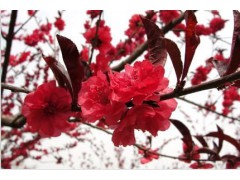 红叶碧桃是碧桃的一个变异品种,红叶碧桃是蔷薇科落叶小乔木,性喜温暖向阳环境,适生温度15-30度。宜于深厚,喜肥沃而排水良好的土壤,不耐水湿,碱性土及粘重土均不适宜。它常采用嫁接繁殖。红叶碧桃不但花朵美丽,而且叶呈紫红色,布置于庭院,是很好的观赏树种。该植物花期为4—5月,分为长花枝,中花枝和短花枝及花束状枝,花芽分化集中在7月至8月。果期为6—8月,8月下旬成熟。