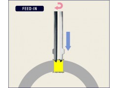 刀片过孔是依靠弹性收缩改变了刀片的外径尺寸,刀片的圆周外角经过倒角处理,过孔时不会对原孔壁产生切削与损伤,过孔后自然张开实现倒角切削。当刀体深入孔壁下端时,不论张开还是闭合,都会相应的产生倒角切削,特别是当退刀时,刀片闭合,内端33度角改变到近似45度角,可以达到倒角近似45度。