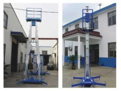 升降平台是一种垂直运送人或物的起重机械。也指在工厂、自动仓库等物流系统中进行垂直输送的设备,升降台上往往还装有各种平面输送设备,作为不同高度输送线的连接装置。一般采用液压驱动,故称液压升降台。除作为不同高度的货物输送外,广泛应用于高空的安装、维修等作业。升降台自由升降的特点已经广泛运用于市政维修,码头、物流中心货物运输,建筑装潢等,安装了汽车底盘、电瓶车底盘等能自由行走,工作高度空间也有所改变,具有重量轻、自行走、电启动、自支腿、操作简单、作业面大,能跨越障碍进行高空作业等360度自由旋转优点。