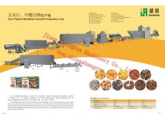 早餐谷物食品是一种脆性食品,是以谷物为基本原料,经该生产线加工而成颗粒形、薄片形或动物造型的营养方便食品。其突出特点是含有丰富的复合碳水化合物及膳食纤维,同时早餐谷物食品即可强化许多微量元素,如维生素和矿物质,又可添加可可粉、糖粉、蜂蜜、麦芽糖等。兑入咖啡、牛奶、酸奶或功能饮料后,可直接食用。儿童还可将早餐谷物食品当成甜脆休闲小吃食品。